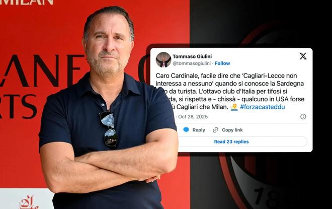 卡利亚里主席驳斥米兰老板:在美国,有人更支持卡利亚里而不是米兰