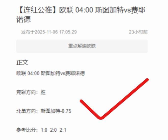 PP体育联合竞彩行业头部机构,共同打造【竞彩分析栏目】,整合专业分析师团队与赛事版权资源,构建覆盖文字、视频、直播的全方位竞彩生态。栏目定位于“数据驱动+专业解读”,服务于彩民与体育迷的双重需求。点击下方扫码进入PP体育有料主页,查阅更多精准赛事分析昨日回顾昨日公推斯图加特再次成功拿下!近期公推继续连红!私厨方面!超级王牌皇家贝蒂斯稳稳拿下近17中16!今日PP有料团队调整状态继续奉上足球赛事/澳超等精选赛事!同时想了解更多详细内容可添加下方客服!