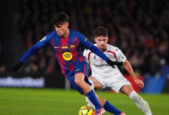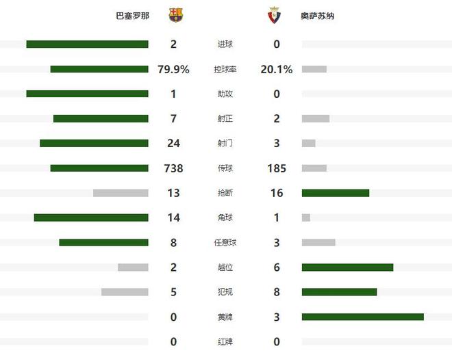 比赛正式开打后,左路的拉什福德就非常活跃,第7分钟强突到底线传中被防守球员挡出,2分钟后,再次利用个人能力,杀入奥萨苏纳禁区,在和防守球员对抗后倒地,不过主裁判没有任何表示,第15分钟亚马尔挑传禁区,费兰跟进打门没有压住,皮球直接飞出底线。第25分钟费兰托雷斯门前头球,攻破了客队的球门,但越位在先进球被果断取消,半场结束之前,费兰托雷斯再次浪费进球良机,亚马尔连续突破戏耍防守球员后倒三角传中,费兰在无人盯防的情况下倒钩打门,没有能够命中目标。