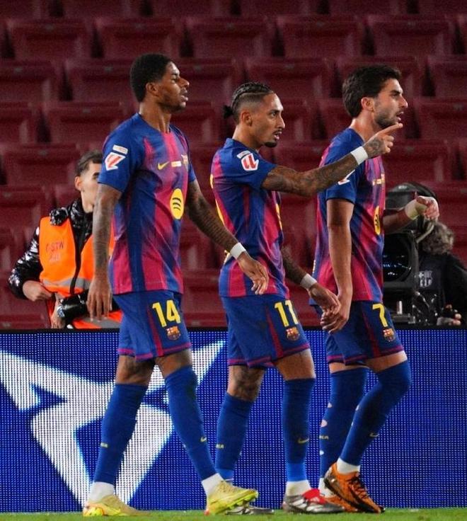 西甲豪门巴塞罗那本赛季虽然在欧冠表现没有达到预期,但是联赛发挥强势,在开局不利,一度被死敌皇家马德里压了一头的情况下,在前十六场战罢,以13胜1平2负的战绩,坐上了积分榜第一的位置,而且还领先了银河战舰4个积分,牢牢把主动权掌握在了自己的手中。这一个比赛日,联赛正处于六连杀的巴塞罗那,迎来了第十六轮的考验,坐镇主场迎战奥萨苏纳,本场比赛巴塞罗那在诺坎普攻防两端完胜对手,靠着拉菲尼亚的梅开二度,2-0全取三分,多赛一场的情况下,领先第二名皇马7分。