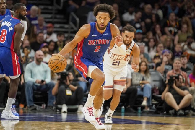 第三位:凯德·坎宁安本赛季数据:26.9分、6.1个篮板、9.1次助攻、1.5次抢断和0.9次盖帽所在球队:底特律活塞队作为2021届新秀的状元秀,坎宁安在进入NBA的前几个赛季,由于球队阵容不佳,加上出现了伤病的问题,所以并未能够立马打出符合预期的表现,甚至在23-24赛季带领球队创造了史无前例的28连败的耻辱纪录,令人感到有些失望。但就是在这种困境之下,坎宁安完成了巨大的逆袭,不仅在上个赛季帮助球队回到了季后赛的舞台,个人还分别入选了最佳第三阵容和全明星阵容。到了本赛季,坎宁安继续自己的进步,场均狂砍26.9分、6.1个篮板、9.1次助攻、1.5次抢断和0.9次盖帽,带领沉寂多年的活塞队位居东部第一。也正是因为他的出色发挥,坎宁安被评选为了上个月的东部最佳球员,还在MVP榜进入了前五的行列。而且更让球迷们感到兴奋的是,他只有24岁,未来仍有巨大的进步空间,假以时日也许真的在坎宁安的带领下,活塞队能够拿到第四座总冠军奖杯。