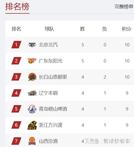- CBA | CBA积分榜最新排名出炉!北京广东稳居前2:辽宁已跌至第四