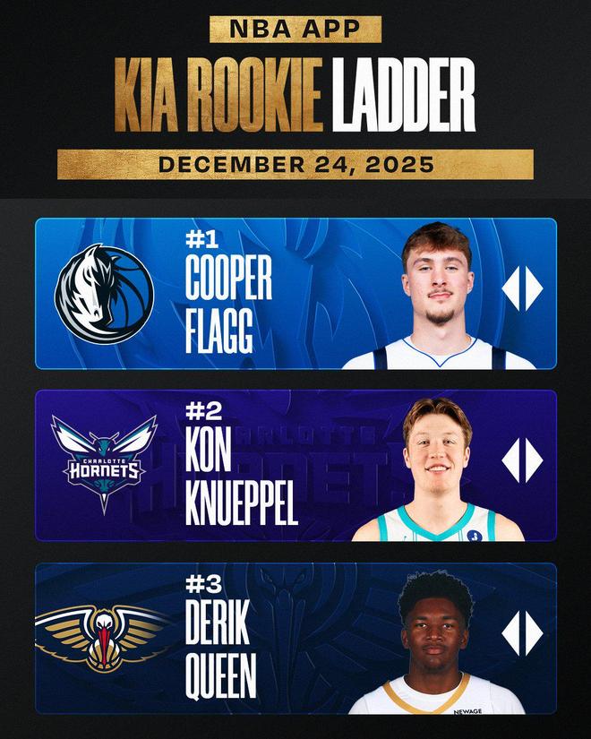 其余排名如下第六名:11号秀科沃德(上期第6)第七名:7号秀费尔斯(上期第4)第八名:42号秀雷诺(上期第9)第九名:落选秀内姆哈德(上期第8)第十名:8号秀杰明(上期未入选)无论是从顶级新秀的表现,还是整体新秀的质量,25年都不愧是公认的选秀大年。