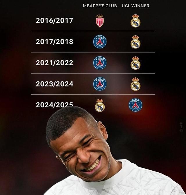 2024年7月,姆巴佩离开巴黎加盟皇马,实现儿皇梦的他想要帮助球队冲击欧冠冠军,从而力争金球奖。但事与愿违,姆巴佩加盟皇马后,白衣军团没有变得更好反而变得更糟!皇马虽然拿了洲际杯冠军和欧超杯,但在国王杯、欧冠、西甲、西班牙超级杯全部丢冠遭遇四大皆空,尤其欧冠被阿森纳5-1横扫止步8强黯然出局!