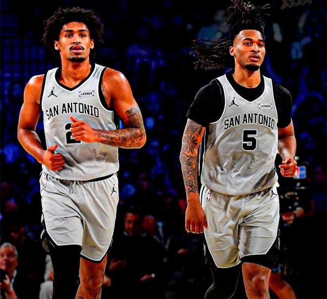 一个数据是这样:本赛季,当文班亚马、卡斯尔、哈珀同时在场时,马刺百回合可以净胜对手54.5分,因为样本不够多(只有49分钟),所以说服力不够高,但别忘了,这三位目前只有21岁、21岁、19岁,马刺球迷们,真的太幸福了。
