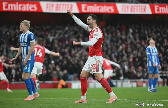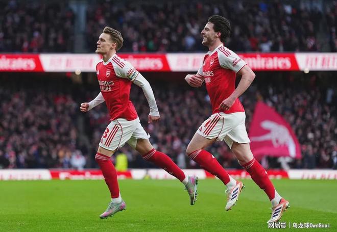 图片阿森纳对阵布莱顿的比赛,第14分钟,萨卡横传,厄德高得球后在禁区前沿完成破门斩获个人本赛季首球,阿森纳1-0领先布莱顿。下半场比赛,第52分钟,阿森纳获得角球机会,赖斯开出角球到禁区造成对方不慎乌龙,阿森纳2-0布莱顿。