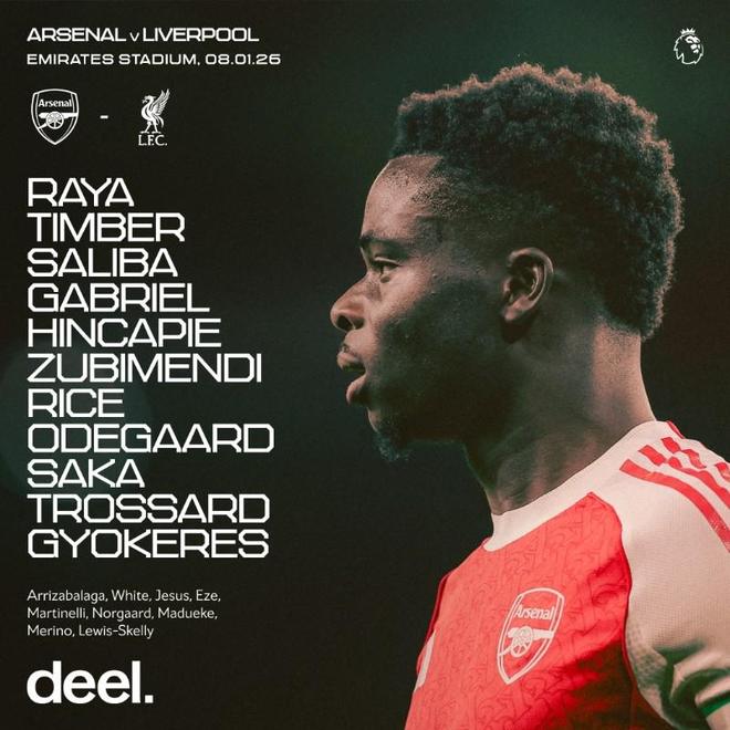 阿森纳vs利物浦:哲凯赖什、厄德高首发,维尔茨、加克波出战