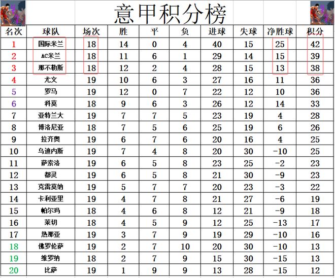 意甲最新积分战报AC米兰绝平保级弱旅国米基本锁定半程冠军