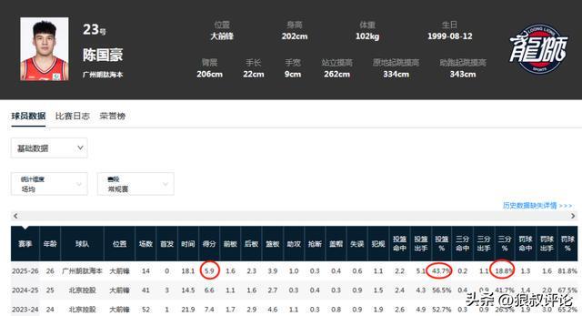 - CBA | 赛季至今0首发!陈国豪登场19分钟得0分多项数据不如效力北控期间
