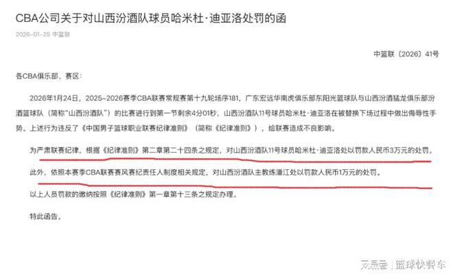 CBA终于开出罚单了!迪亚洛被罚3万没禁赛:山西深夜强势回应