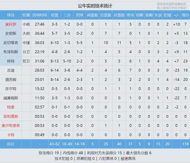 三节打完,湖人104-89已经领先到15分。东契奇前三节19中12,砍下37分6篮板10助攻。八村塁前三节8中7得到17分,正负值+26全队最高。第四节公牛外线手感下降,前10次三分出手只进2个,比赛最后3分钟,湖人仍然领先9分。
